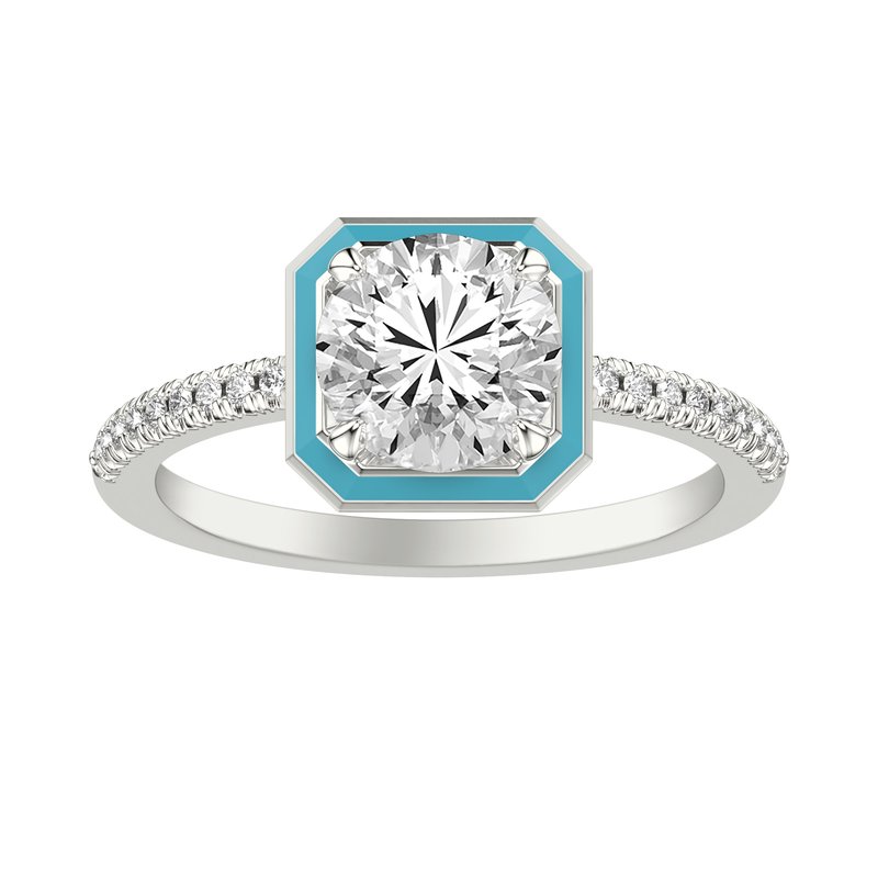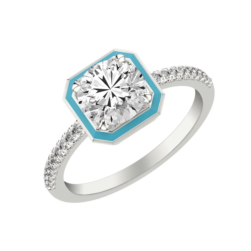 Engagement Ring with Ceram8 Petite Halo and Diamond Shank with Round Center