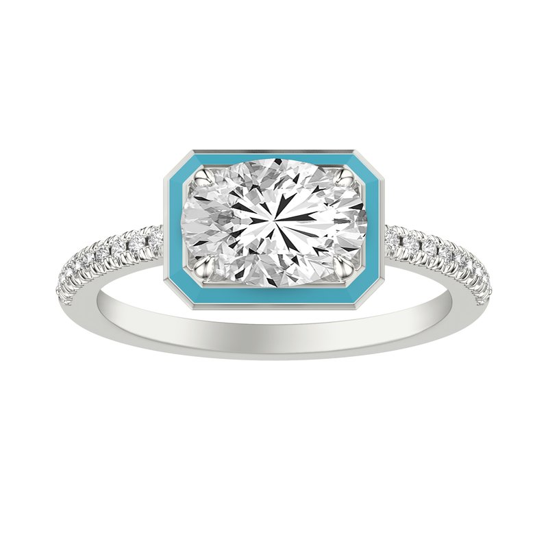 Engagement Ring with Ceram8 Petite Halo and Diamond Shank with Oval Center