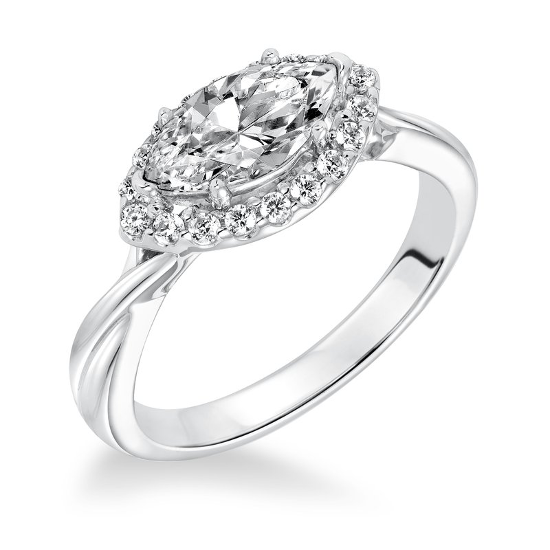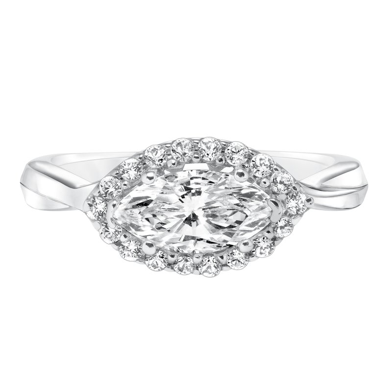 East/West Diamond Halo with Twisted Shank Engagement Ring