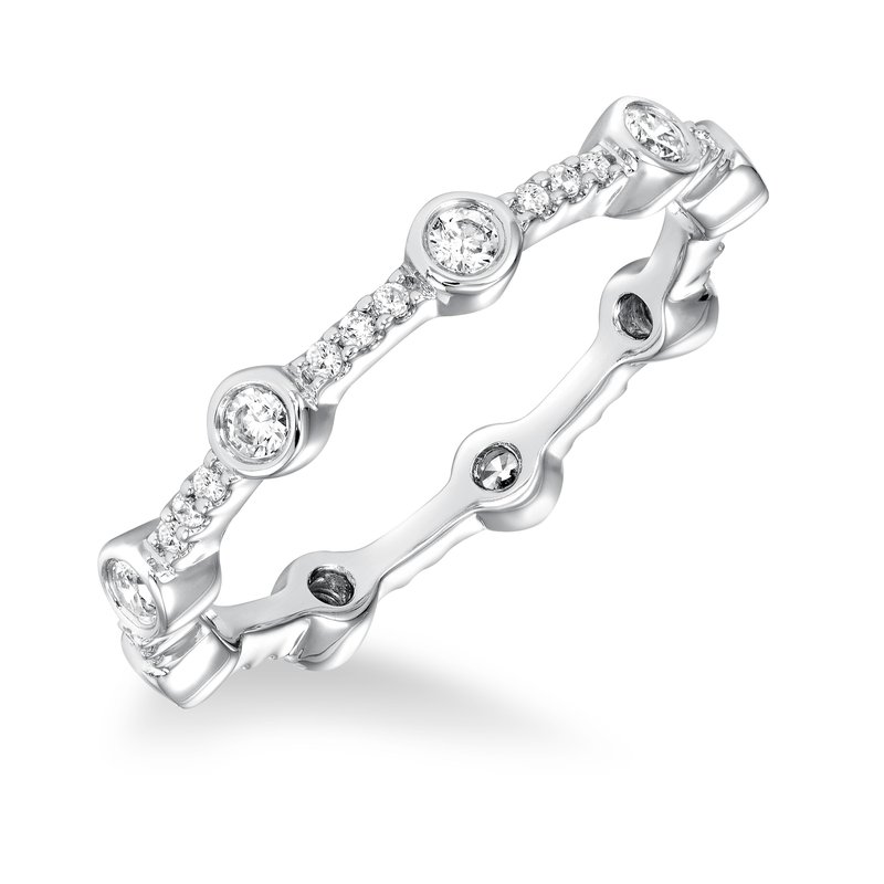 Stackable eternity band with bezel and prong set with white diamonds
