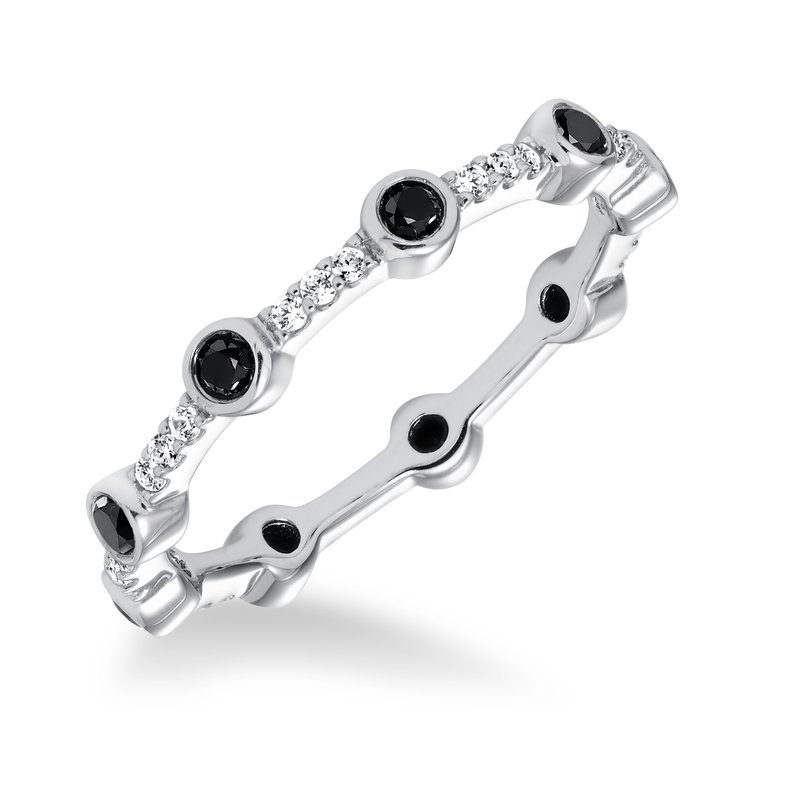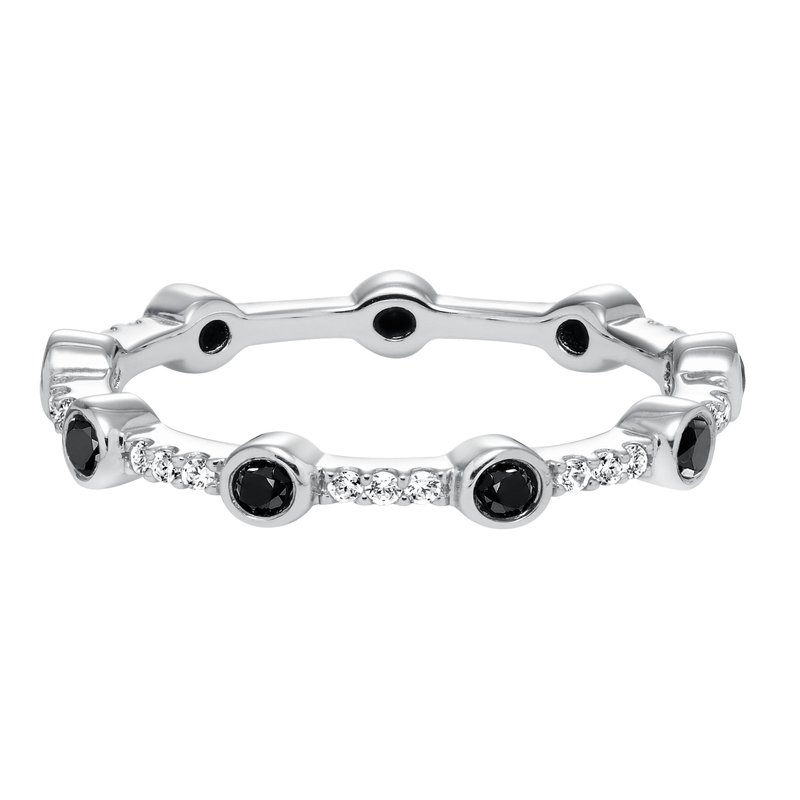 Stackable eternity band with bezel and prong set black and white diamonds