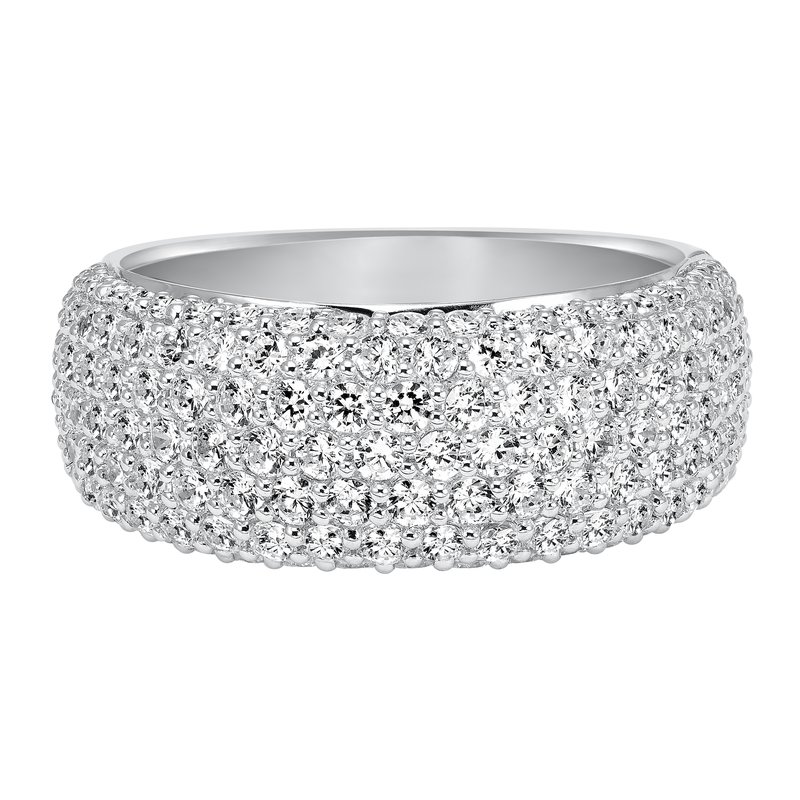 Wedding band with multi-row, round, bead set diamonds.