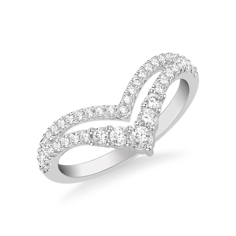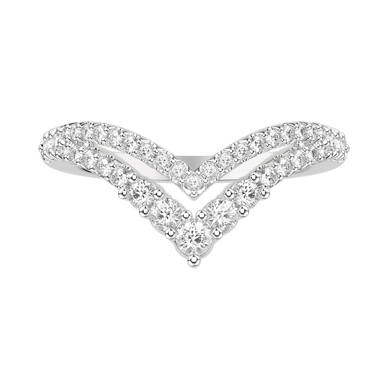 Contemporary Double V Curved Stackable with Graduated Diamond Ring