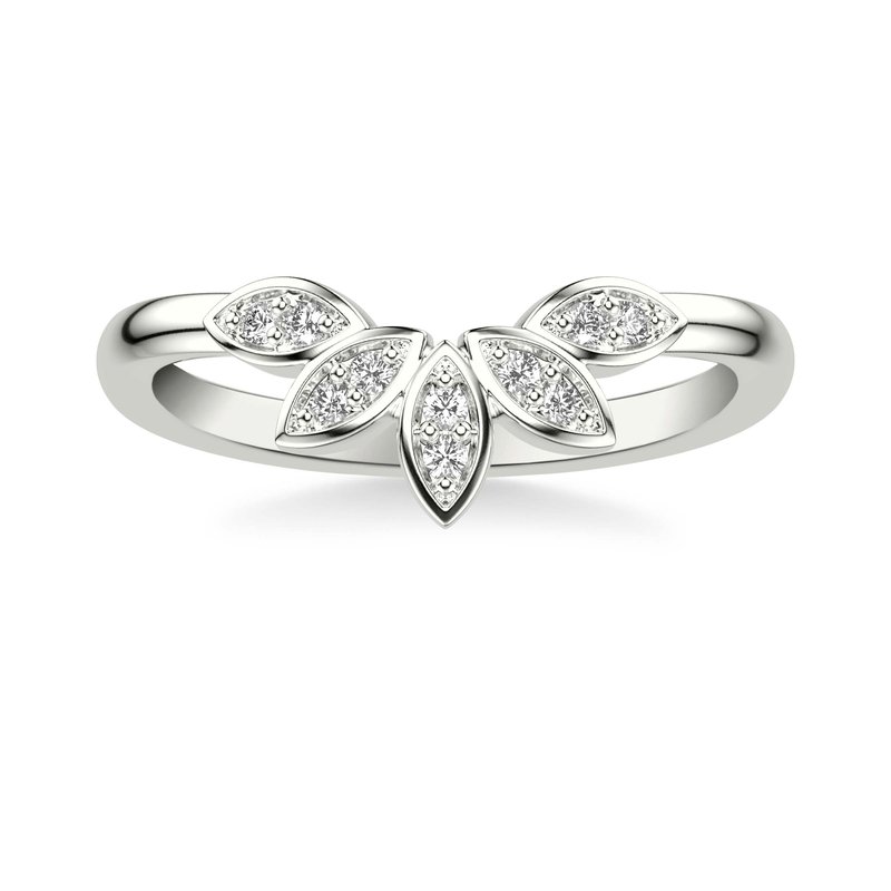 Contempoary Curved Stackable Polished Band with Diamond Petal Accents