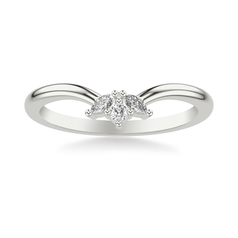 Contemporary Curved Stackable Polished Band with Petite Marquise Diamond Accent
