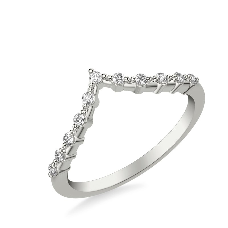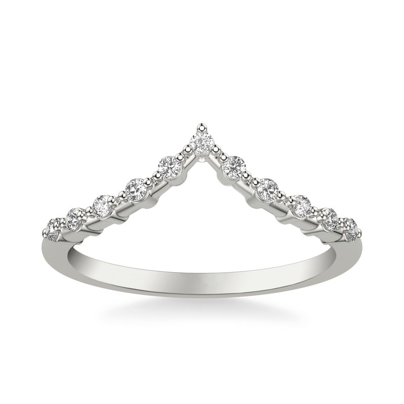 Contemporary V Curved Stackable Band with Single Shared-Prong Set Diamonds