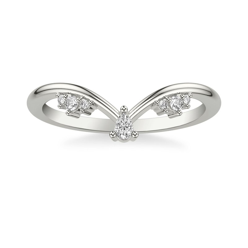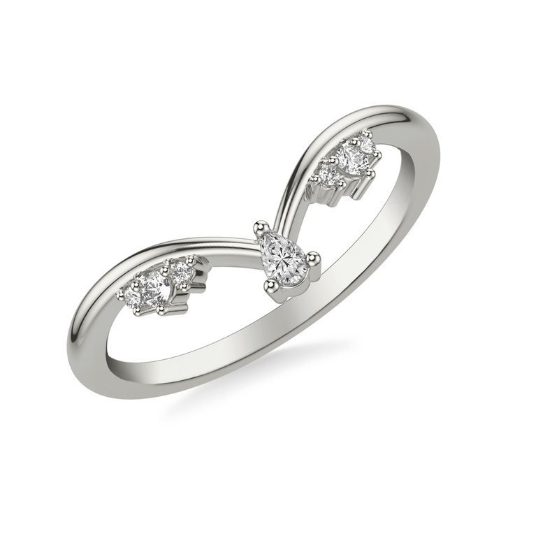 Contemporary V Curved Stackable Polished Band with Cluster Diamond Stations and Petite Pear Diamond Accent