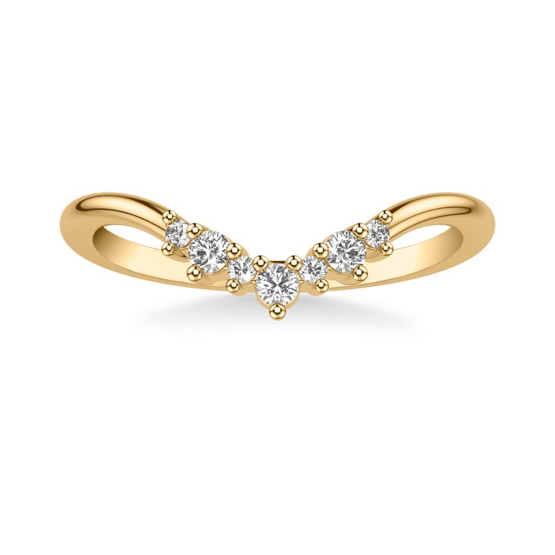Contemporary V Curved Stackable Polished Band with Graduated Diamond Accents