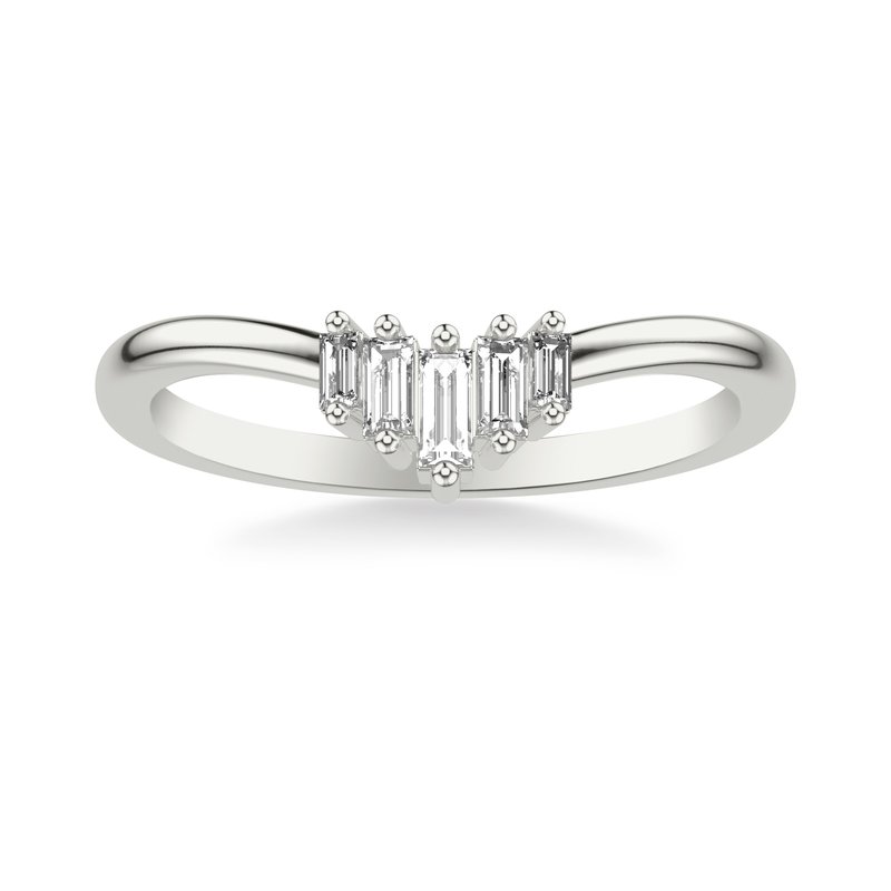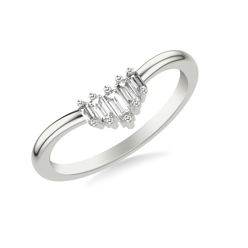 Contemporary Curved Stackable Polished Band with Graduated Baguette Diamonds