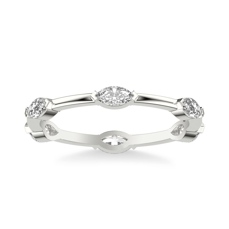 Contemporary Stackable with Distance Marquise Diamond Accent Ring