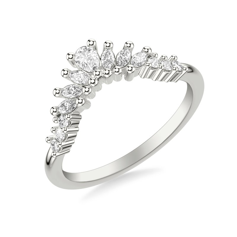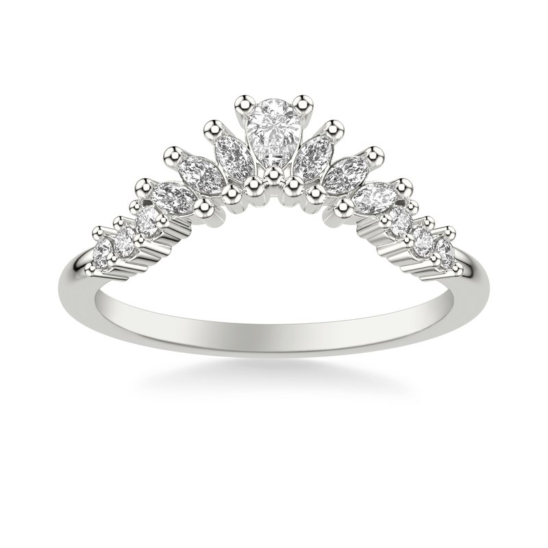 Contemporary Curved Stackable with Prong Set Mixed Pear & Marquise & and Round Diamond Band