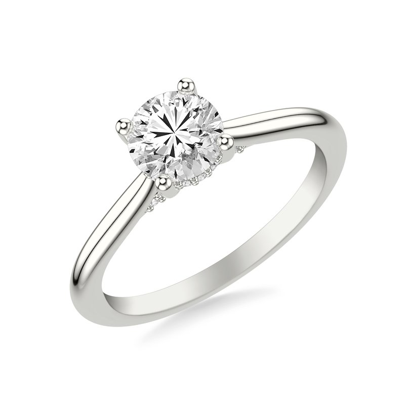Diamond Solitaire Engagement Ring with Diamond Accented Basket and Bridge Complete with Center Stone