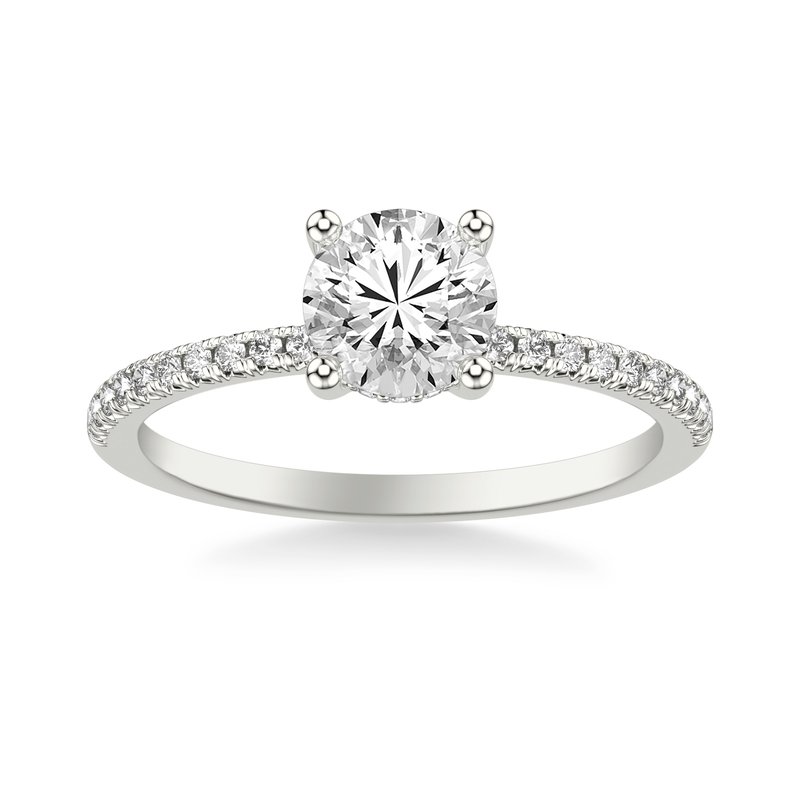 Diamond Engagement Ring with Diamond Accented Basket and Petite Diamond Shank Complete with Center Stone