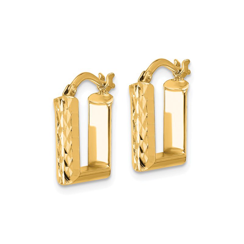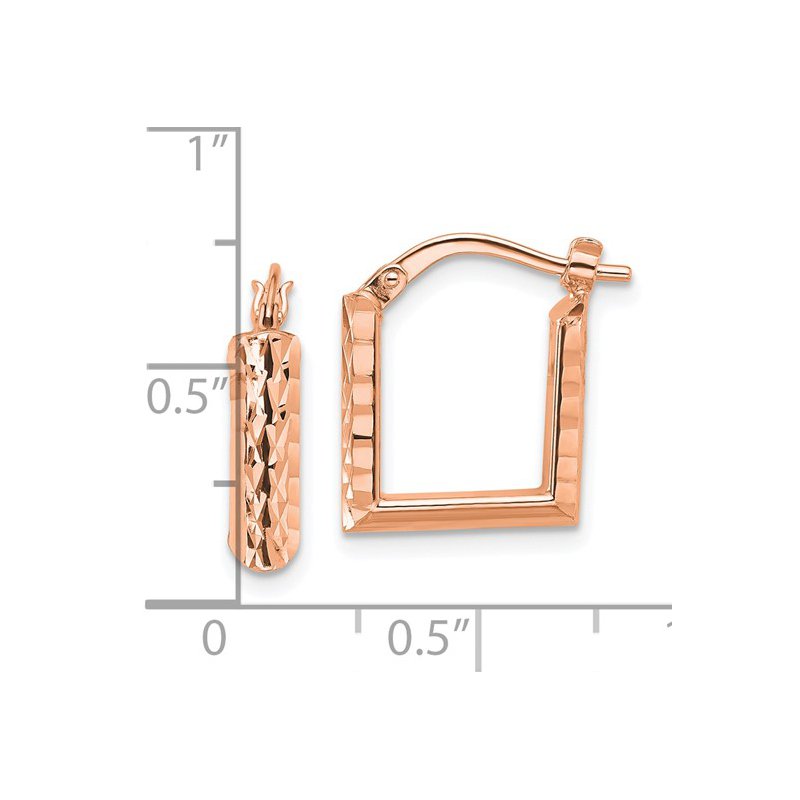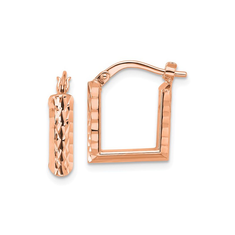 Gold Earrings 14K Rose Gold Diamond-cut Square Hoop Earrings
