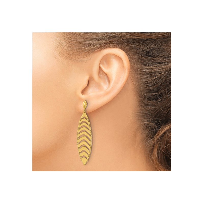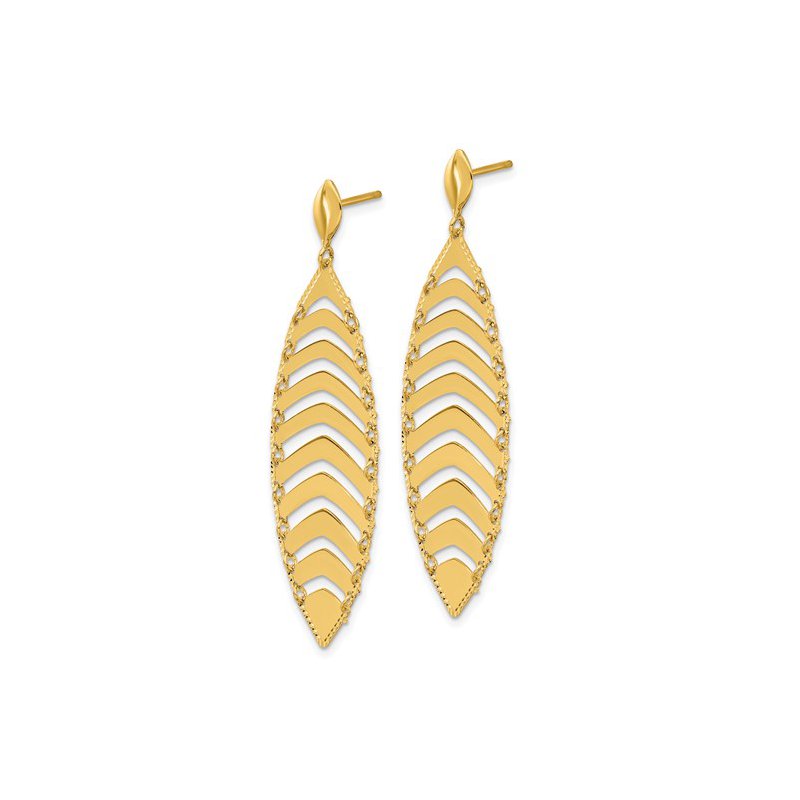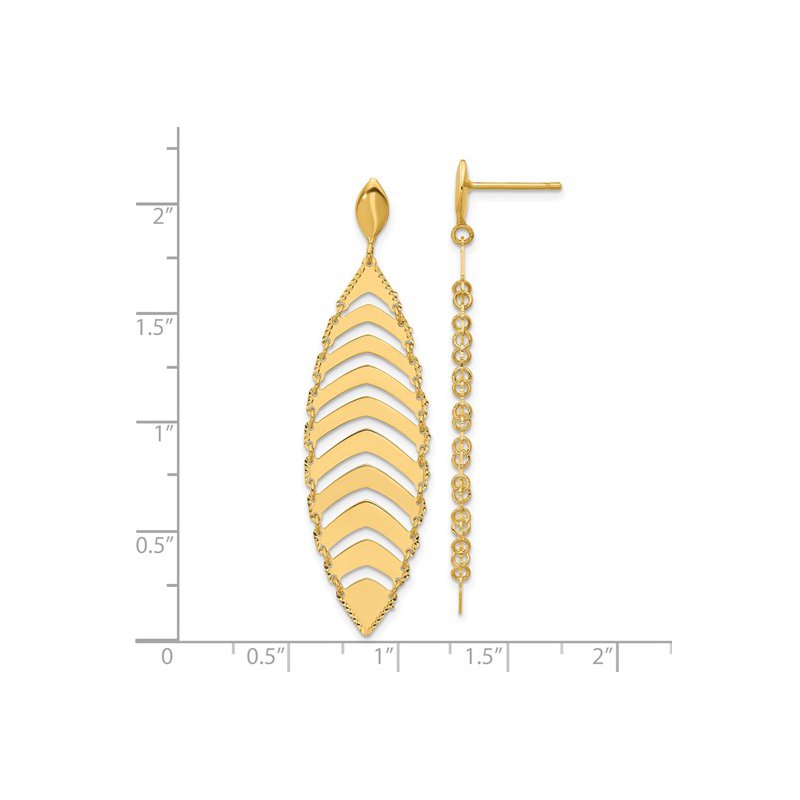 Gold Earrings 14K Yellow Gold Leaf Dangle Earrings