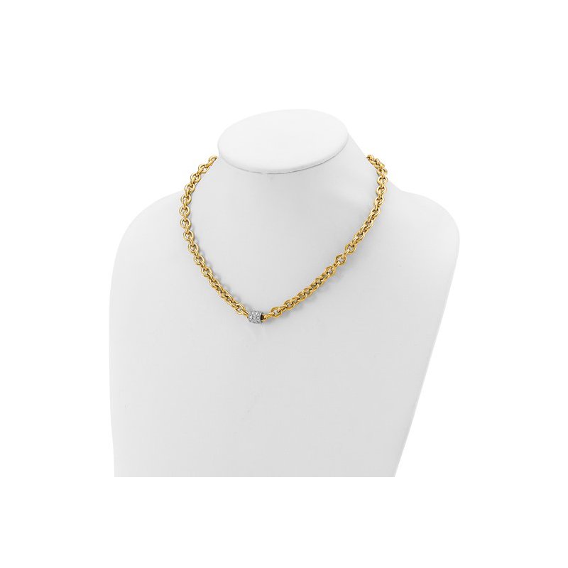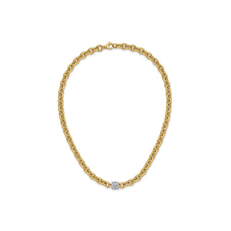 Gold Necklaces & Bracelets 18k Two-toned Polished 18" Diamond Oval Link Necklace