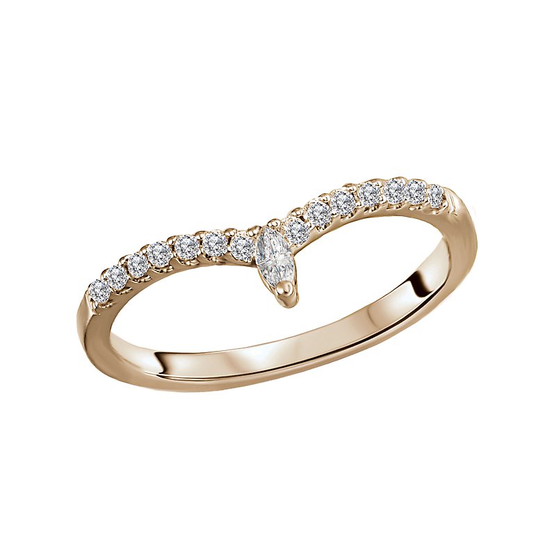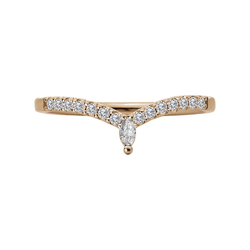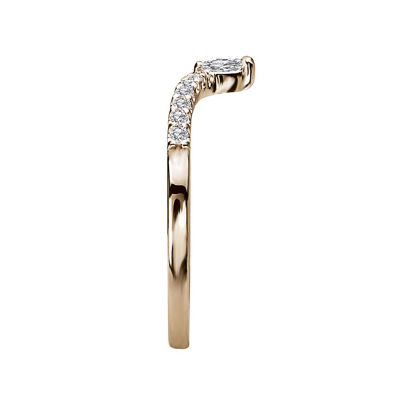 This 14kt yellow gold curved band is lined with round diamonds and a marquise diamond at the tip of the curve. (D 1/5 carat total weight)