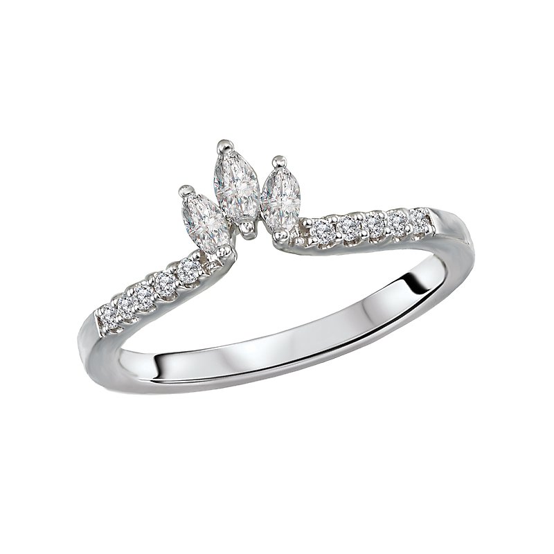 Round diamonds line this band and 3 marquise sparkle in 14kt white gold. (D 1/4 carat white gold)