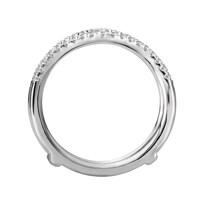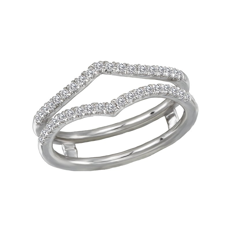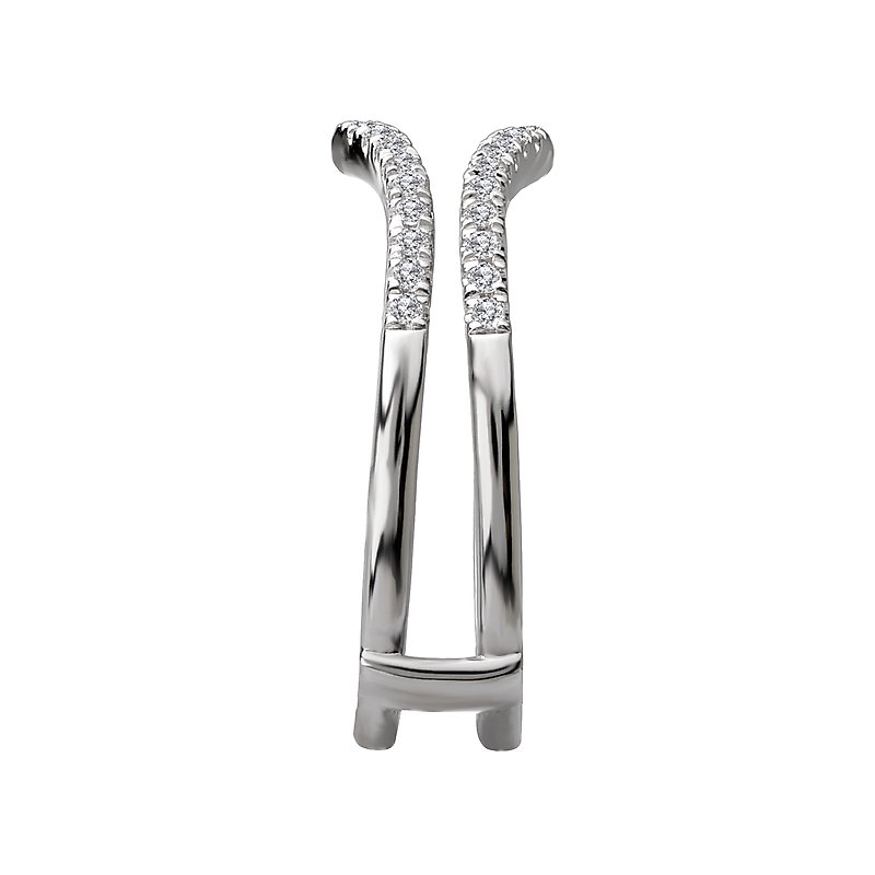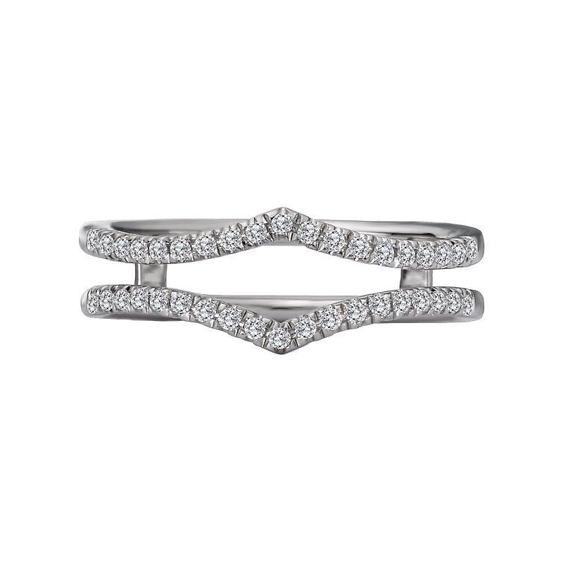 This elegant double wrap wedding band with guard is lined with sparkling diamonds set in 14kt white gold. (D 1/5 carat total weight)