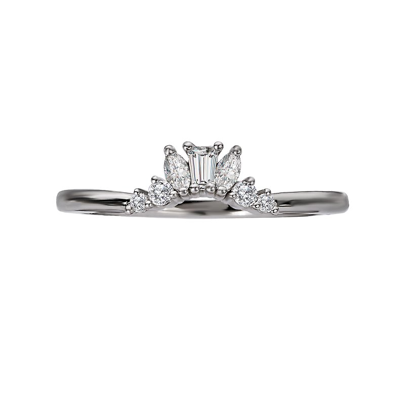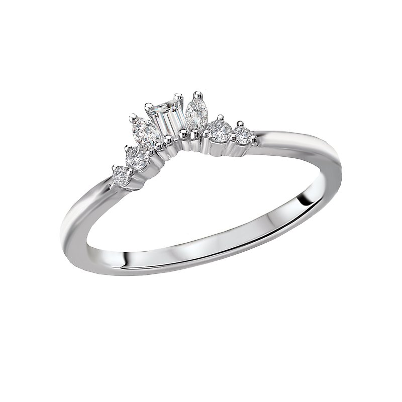 This beautiful matching wedding band is has sparkling round, marquise and a tapered baggette diamonds. (D 1/5 carat total weight)