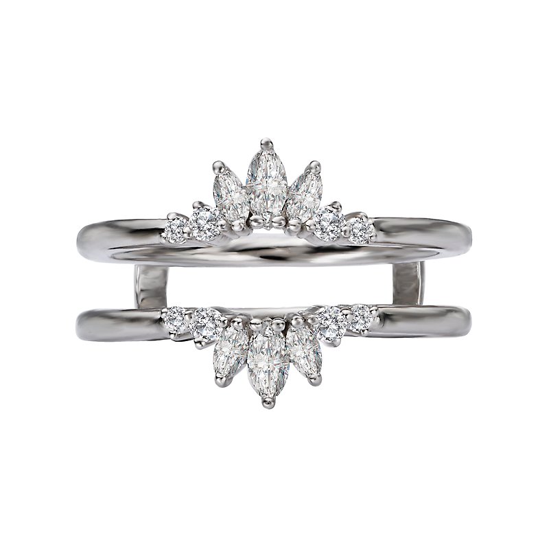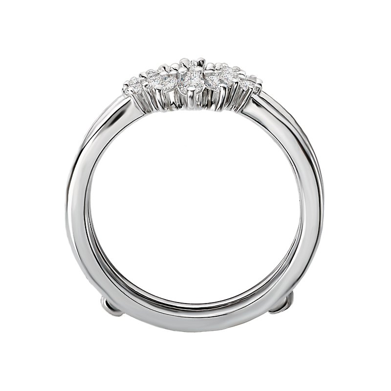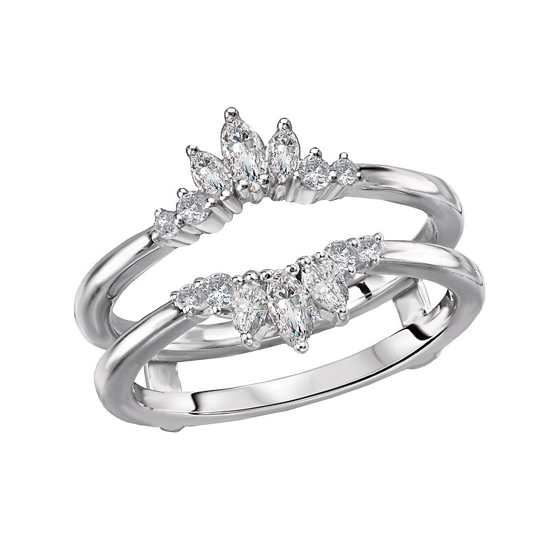 This 14kt white gold wrap with guard has round and marquise shaped diamonds to surround a beautiful engagement ring. (D 1/2 carat total weight)