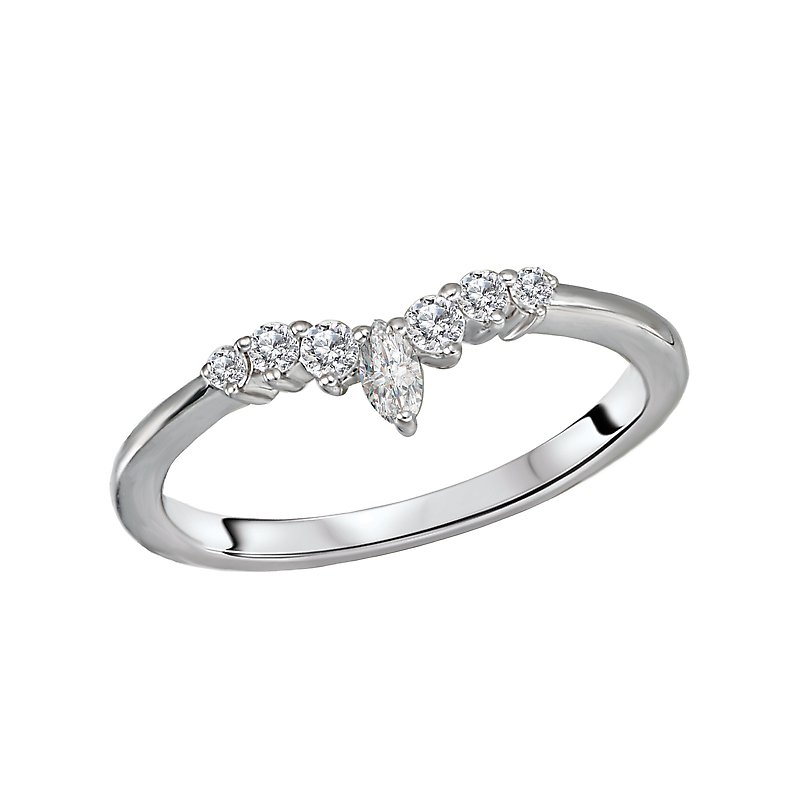 This beautiful 14kt white gold nesting band has round diamonds and a marquise that form the shape of a V. (D 1/5 carat total weight)