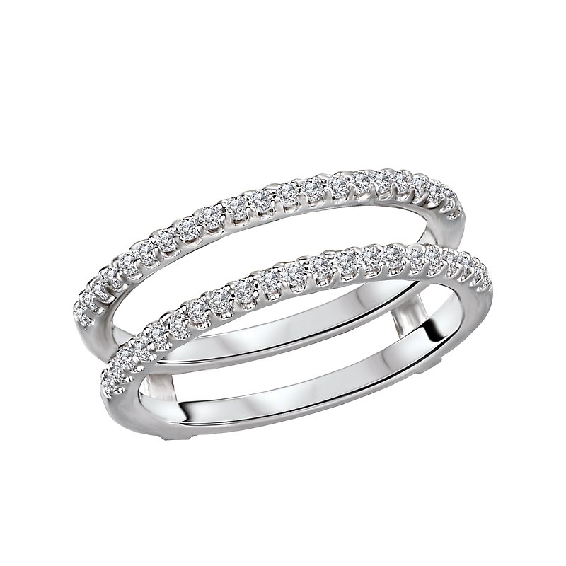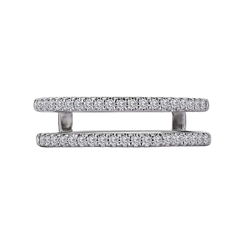 This 14kt white gold wrap with guard has two rows of sparkling round diamonds. (D 1/4 carat total weight)