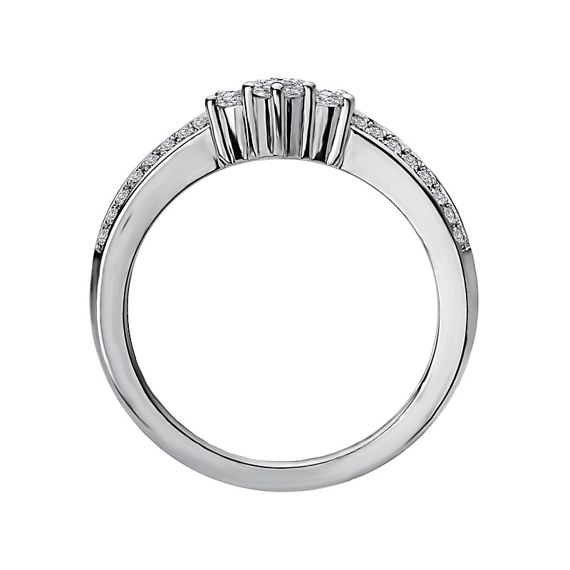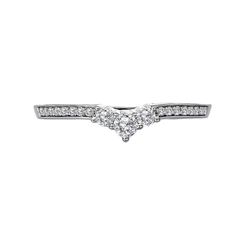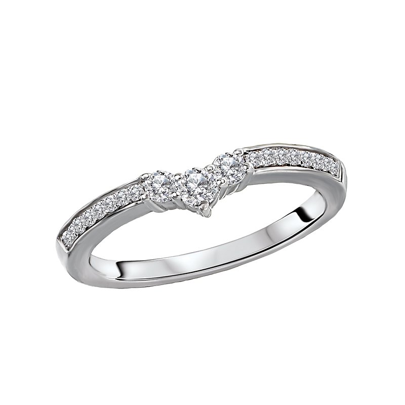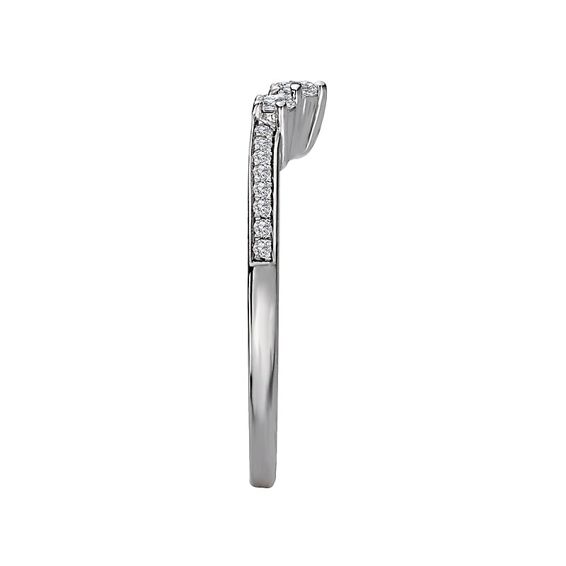 This 14kt white gold nesting band has diamonds along the shanks and a trio of diamonds meant to accent a matching engagement ring. (D 1/4 carat total weight)