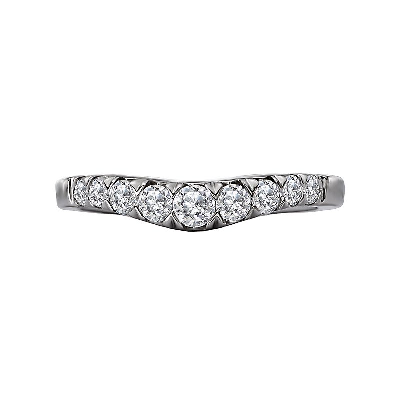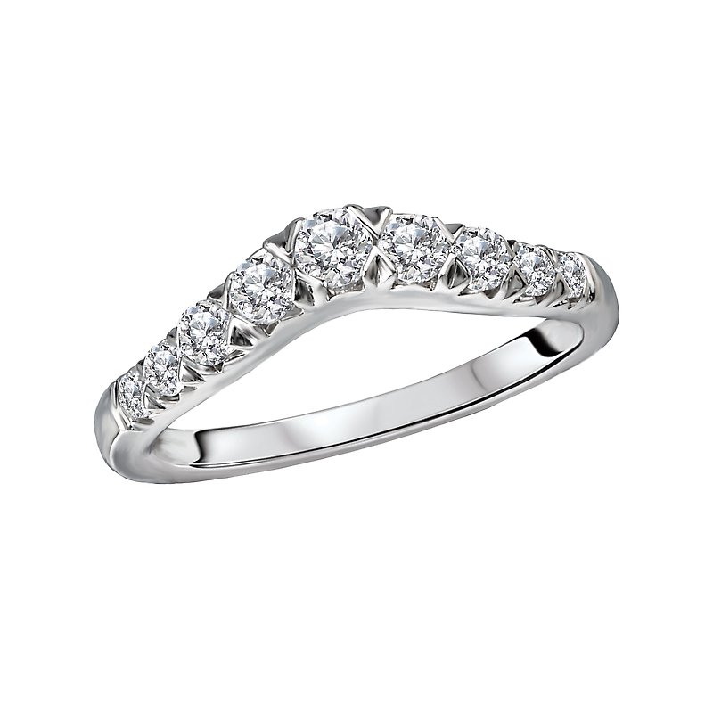 This nesting band has gradual sized round diamonds in a french paved setting sparkling in 14kt white gold. (D 1/2 carat total weight)