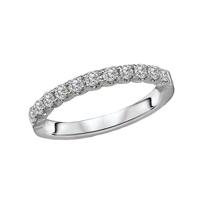 Diamond wedding band in 14kt white gold with 11 round sparkling diamonds. (D 1/3 carat total weight)