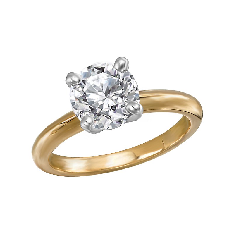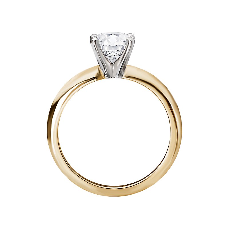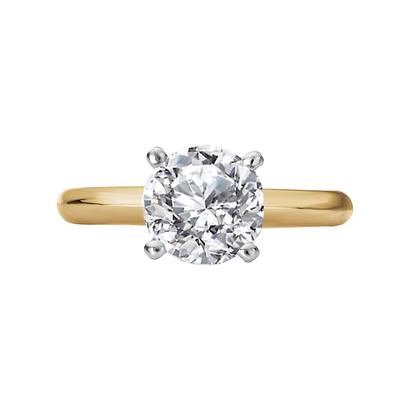 Classic semi-mount solitaire diamond ring features a 14kt yellow gold high polished band with a gorgeous 4 prong knife edge center setting that will accommodate a 7.8mm round diamond.