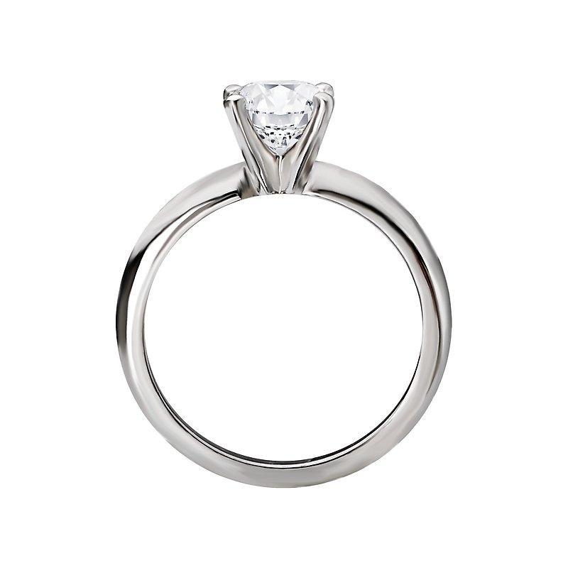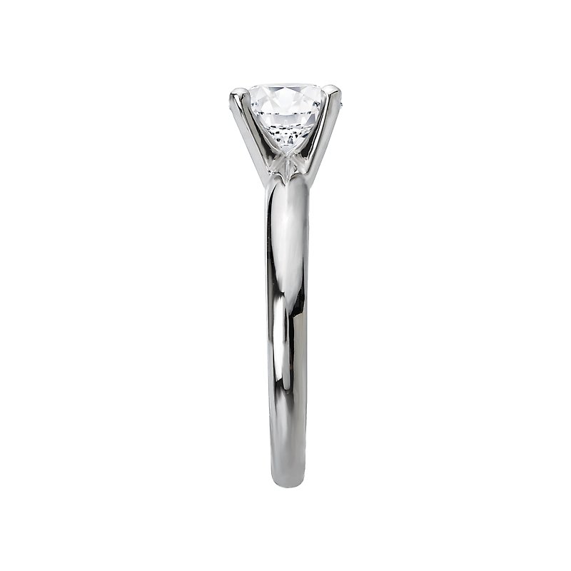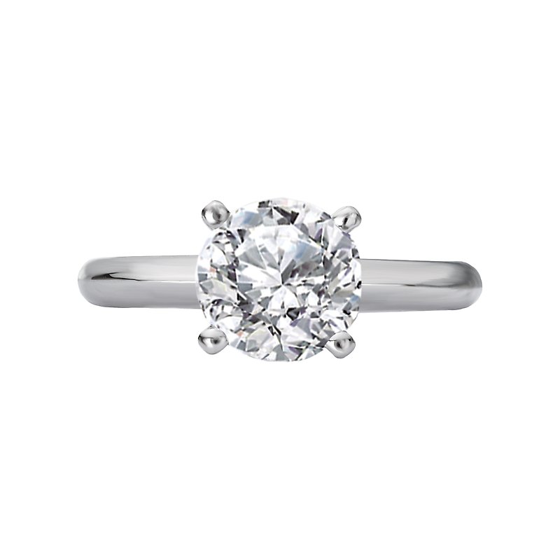Classic semi-mount solitaire diamond ring features a 14kt white gold high polished band with a gorgeous 4 prong knife edge center setting that will accommodate a 7.8mm round diamond.