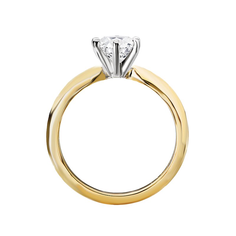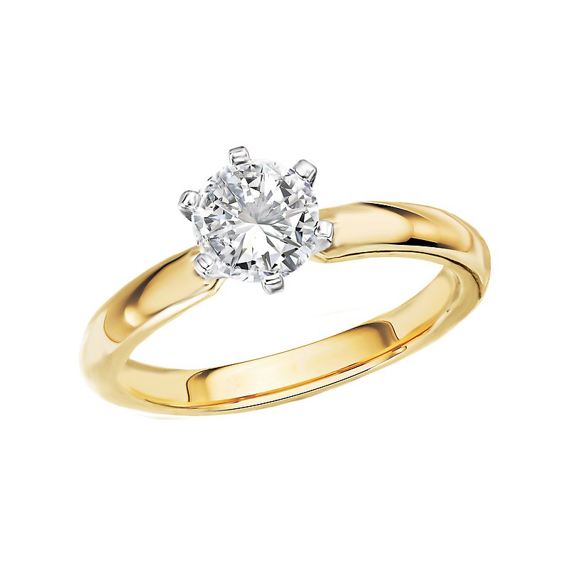 Classic solitaire diamond ring features a 14kt yellow gold high polished band with a gorgeous 6 prong knife edge center setting that will accommodate a 5.8mm round diamond.