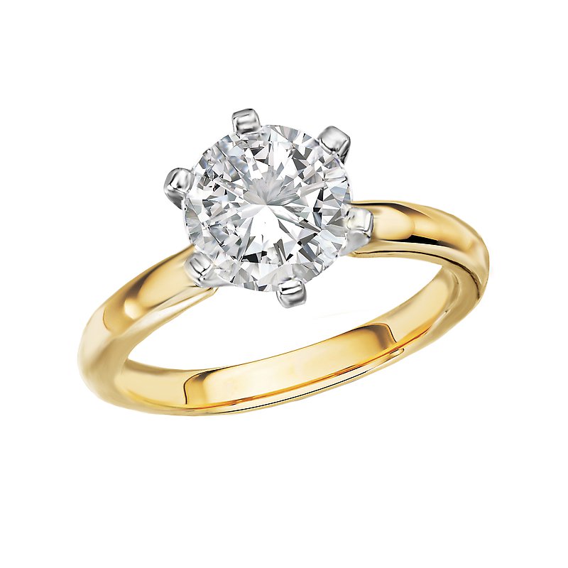 Classic solitaire diamond ring features a 14kt yellow gold high polished band with a gorgeous gorgeous 6 prong knife edge center setting that will accommodate a 7.8mm round diamond.