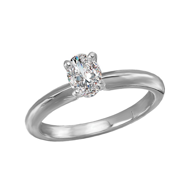 This solitaire has a 14kt white gold band with a setting that will accommodate an oval 1/2 carat diamond.