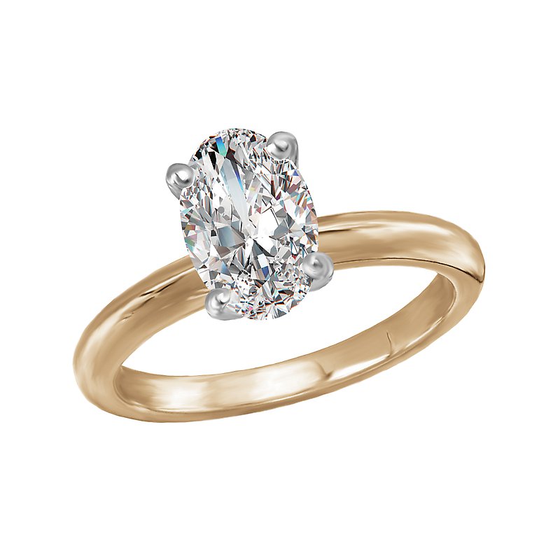 This solitaire has a 14kt yellow gold band with a setting that will accommodate an oval 1.25 carat diamond.