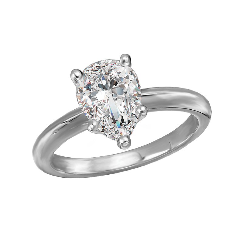 This solitaire has a 14kt white gold band with a setting that will accommodate a pear shaped 1.25 carat diamond.