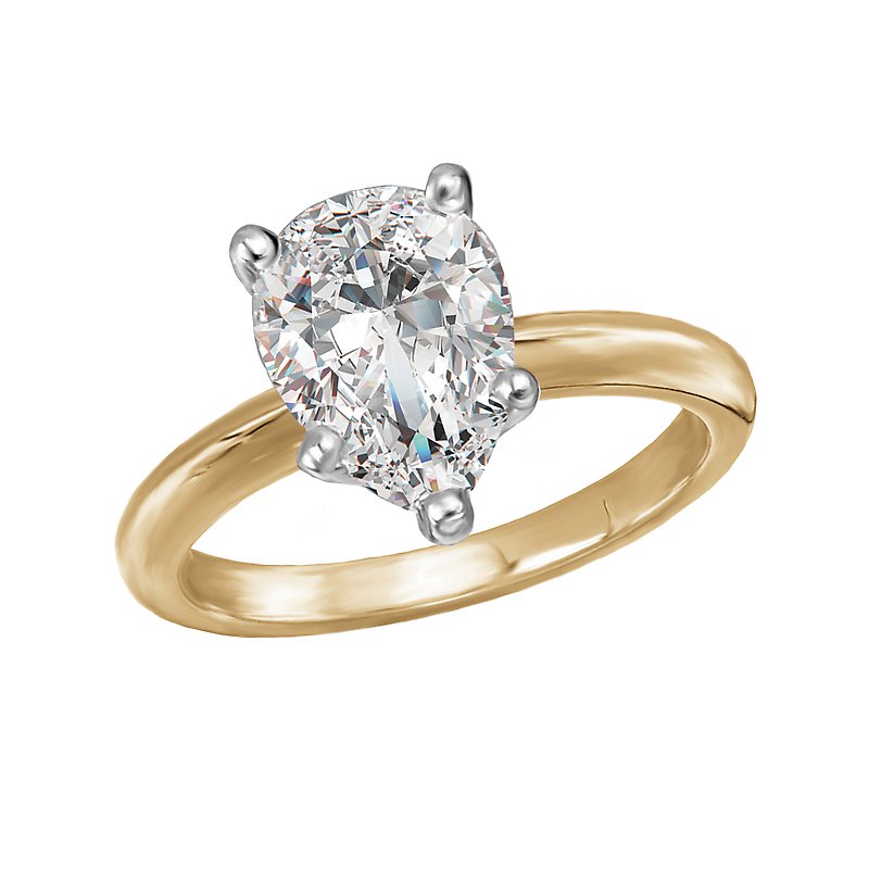This solitaire has a 14kt yellow gold band with a setting that will accommodate a pear shaped 1-3/4 carat diamond.