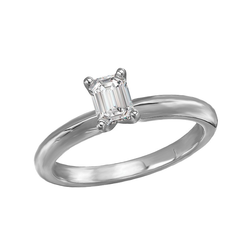 This solitaire has a 14kt white gold band with a setting that will accommodate a emerald cut 1/2 carat diamond.