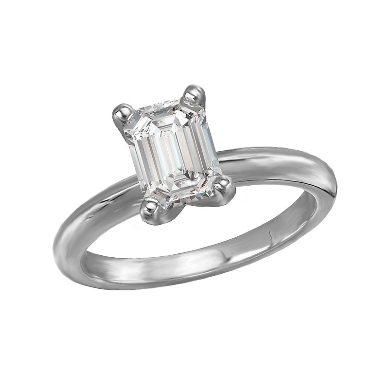 This solitaire has a 14kt white gold band with a setting that will accommodate a emerald shaped 1-1/4 carat diamond.