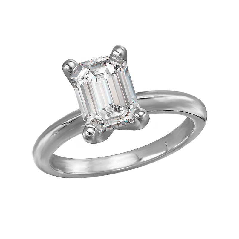 This solitaire has a 14kt white gold band with a setting that will accommodate a emerald shaped 1-3/4 carat diamond.