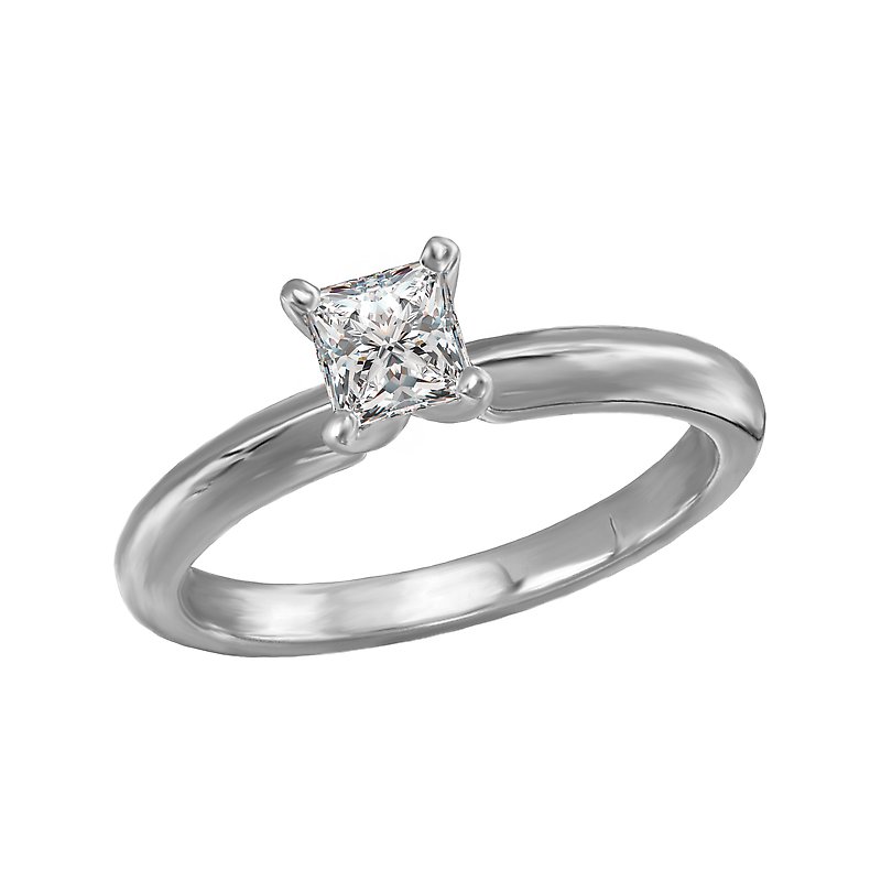 This solitaire has a 14kt white gold band with a setting that will accommodate a princess cut 1/2 carat diamond.