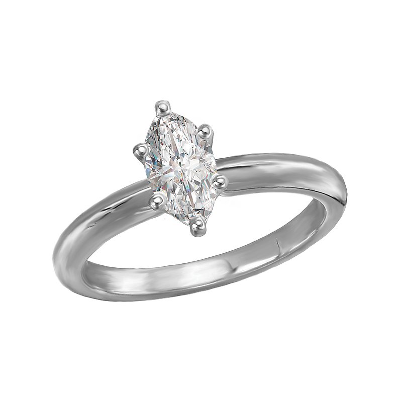 This solitaire has a 14kt white gold band with a setting that will accommodate a marquise cut 3/4 carat diamond.
