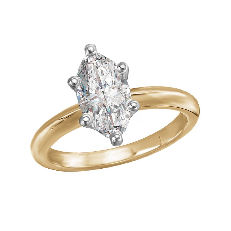 This solitaire has a 14kt yellow gold band with a setting that will accommodate a marquise shaped 1-1/4 carat diamond.