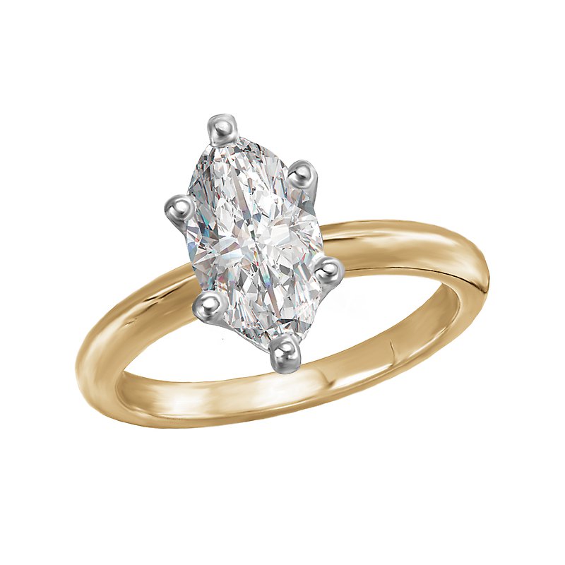 This solitaire has a 14kt yellow gold band with a setting that will accommodate a marquise shaped 1-1/2 carat diamond.