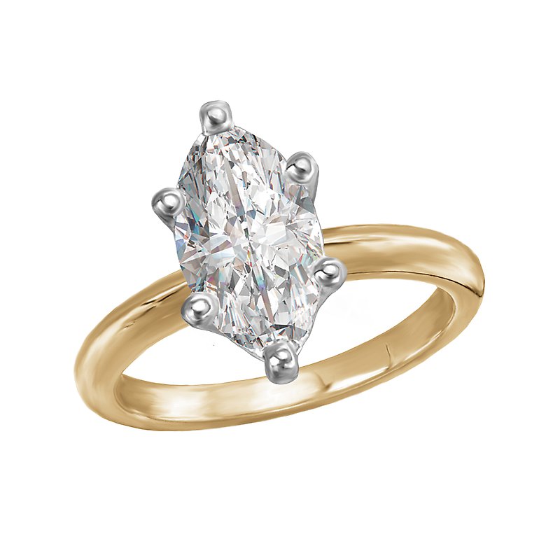 This solitaire has a 14kt yellow gold band with a setting that will accommodate a marquise shaped 1-3/4 carat diamond.