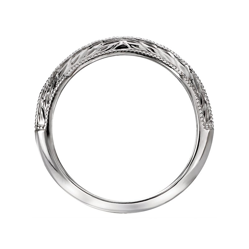 Scalloped Matching Wedding Band in 14kt White Gold with Milgrain Detail.