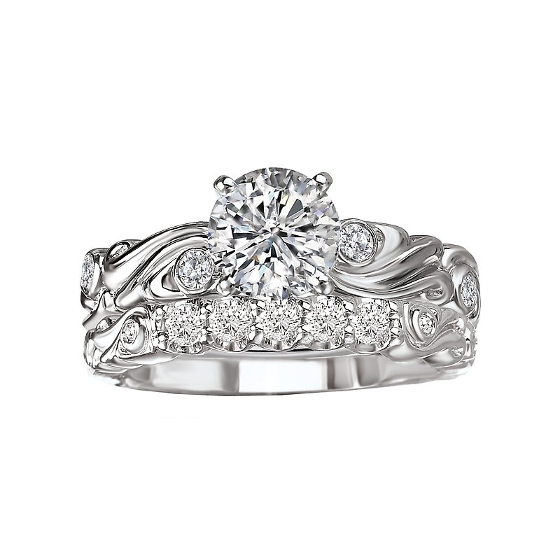 Matching Diamond Wedding Band in 14kt White Gold with Swirl Design. (D. 1/4 carat total weight)