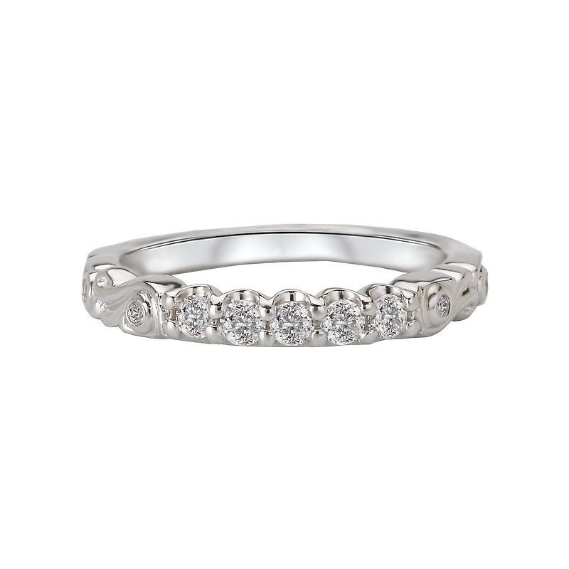 Matching Diamond Wedding Band in 14kt White Gold with Swirl Design. (D. 1/4 carat total weight)