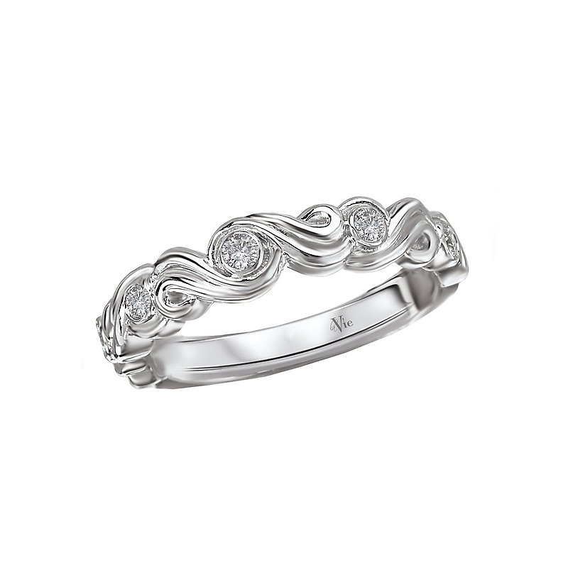 Matching Swirl Design Diamond Wedding Band in 14kt White Gold. (D. 1/10 carat total weight)